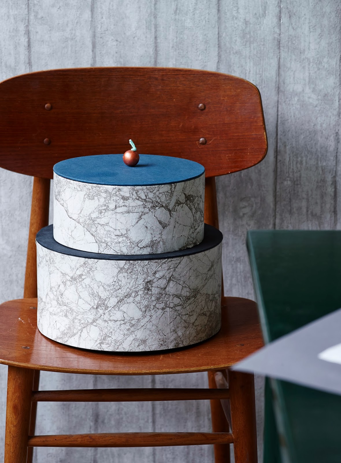 Det skønne tapet der pryder den rå bagvæg spiller flot op til den mørkegrønne skoletavle grønne nuance.
