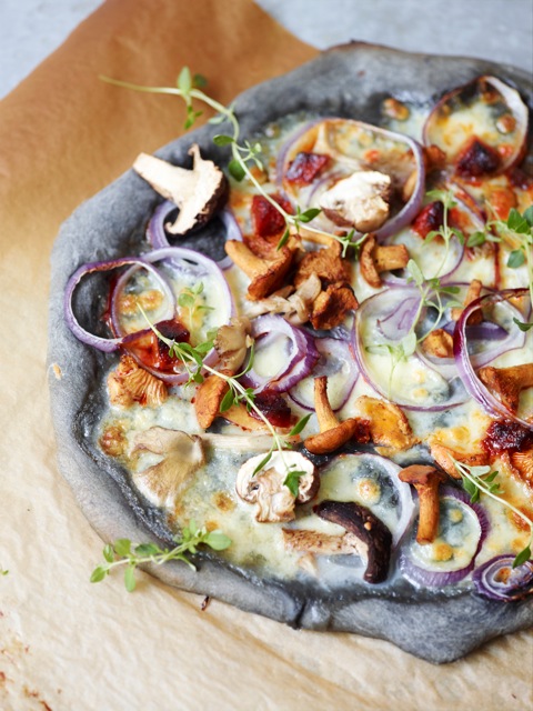 ..her et lækkert foto af Inges pizza med blæksprutteblæk….