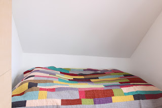 Det lille soveværelse mangler sengelampe, lidt hyggepuder og et natbord fra Kartell.